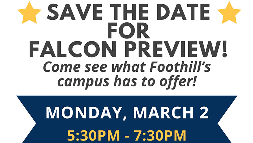 Please see the flyer that promotes Falcon Preview at Foothill High School on Monday, March 2, from 5:30 PM – 7:30 PM.